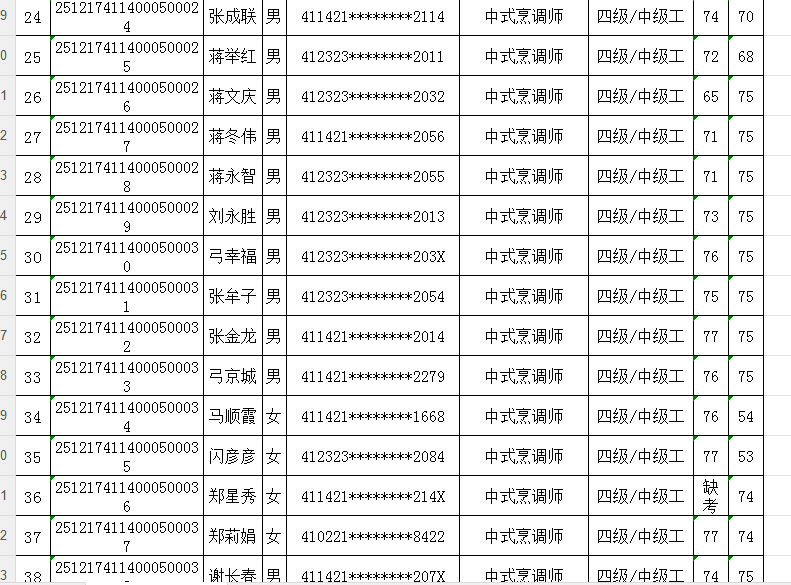按照《人力资源按照《人力资源和社会保障部职业技能等级认定工作规程(试行)》相关规定,现将2025年12月17日中式烹调师职业技能等级认定考试成绩