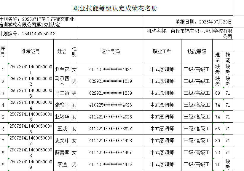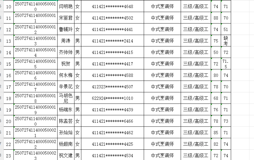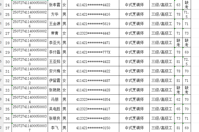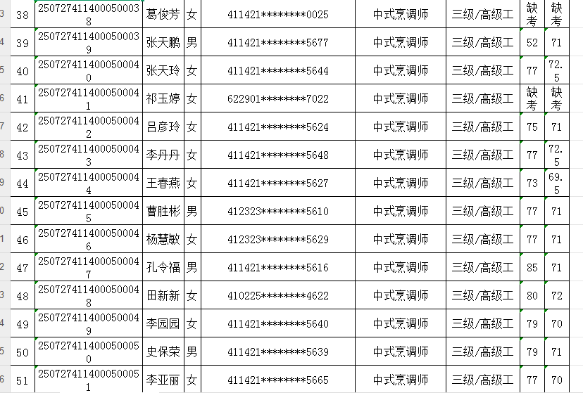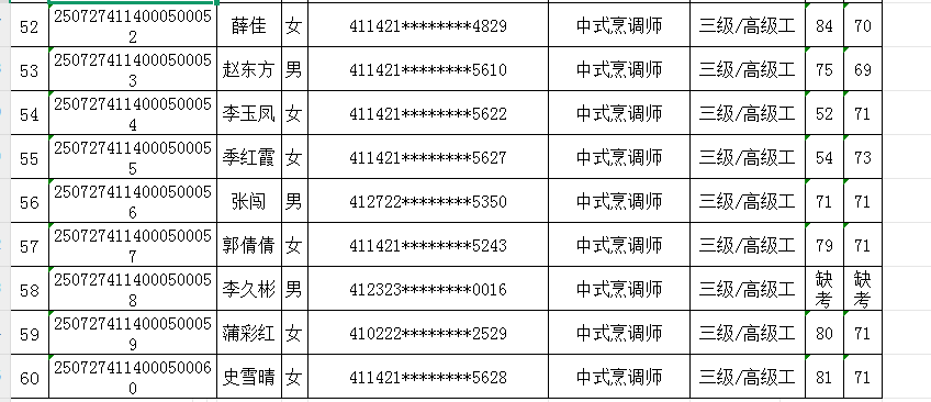按照《人力资源按照《人力资源和社会保障部职业技能等级认定工作规程(试行)》相关规定,现将2025年7月27日中式烹调师职业技能等级认定考试成绩