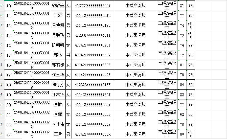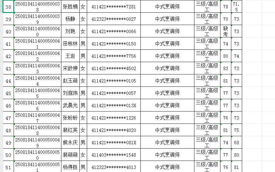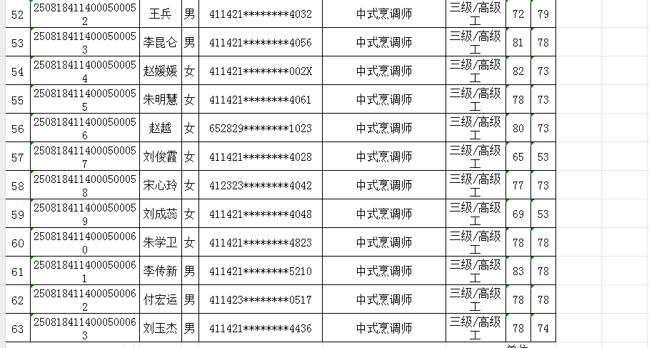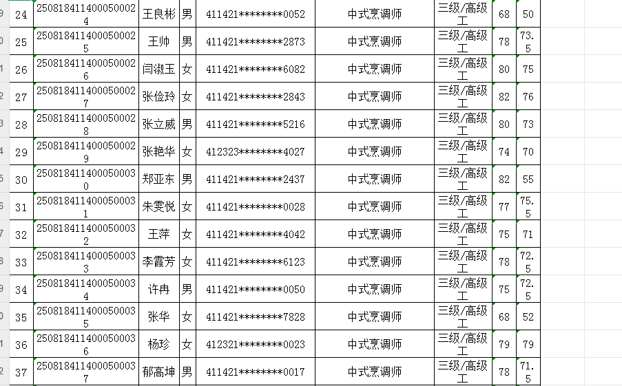 按照《人力资源按照《人力资源和社会保障部职业技能等级认定工作规程(试行)》相关规定,现将2025年8月18日中式烹调师职业技能等级认定考试成绩