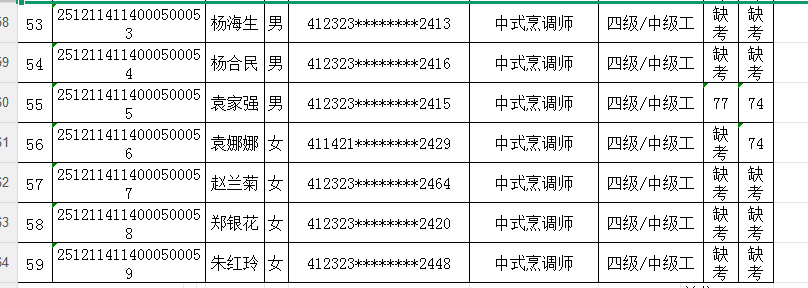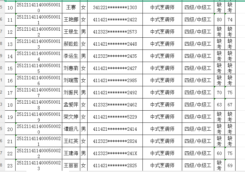 按照《人力资源按照《人力资源和社会保障部职业技能等级认定工作规程(试行)》相关规定,现将2025年12月11日中式烹调师职业技能等级认定考试成绩